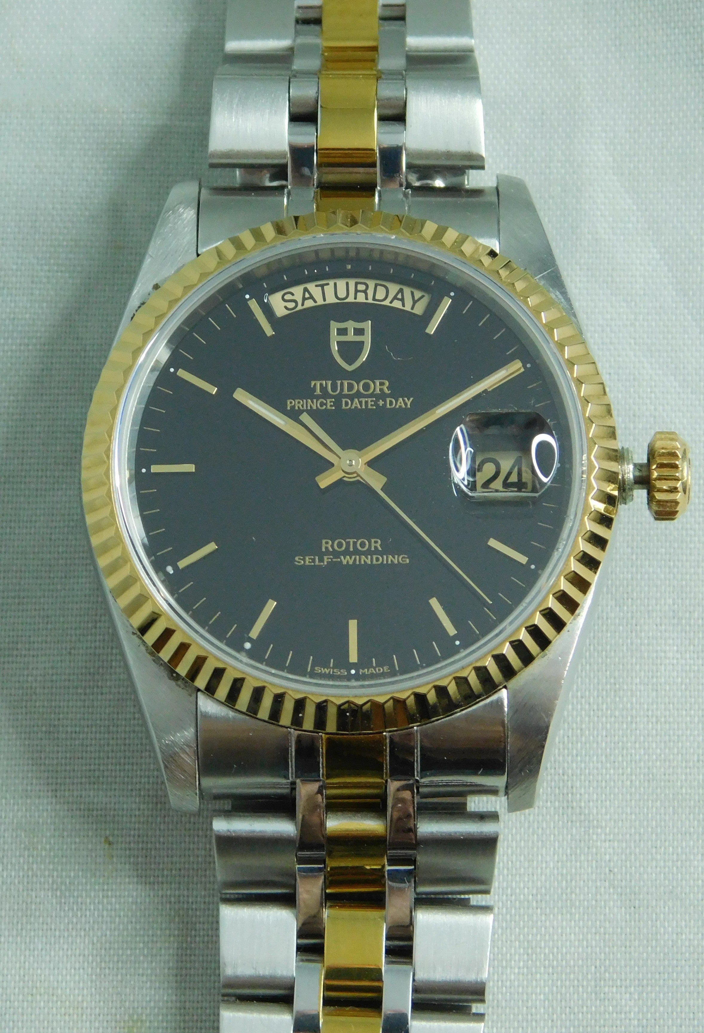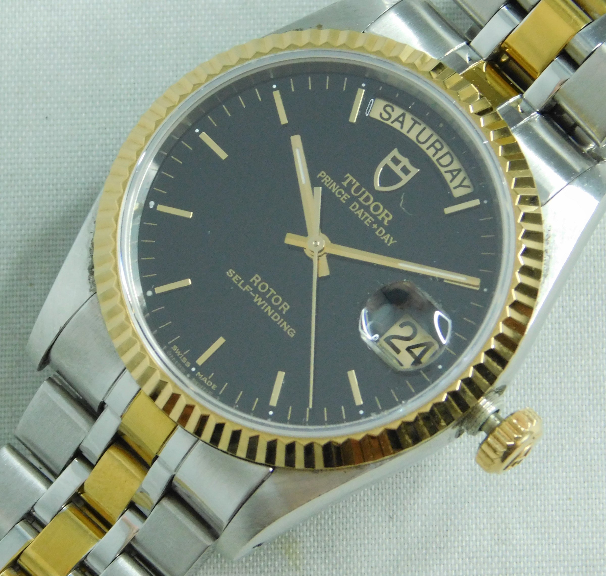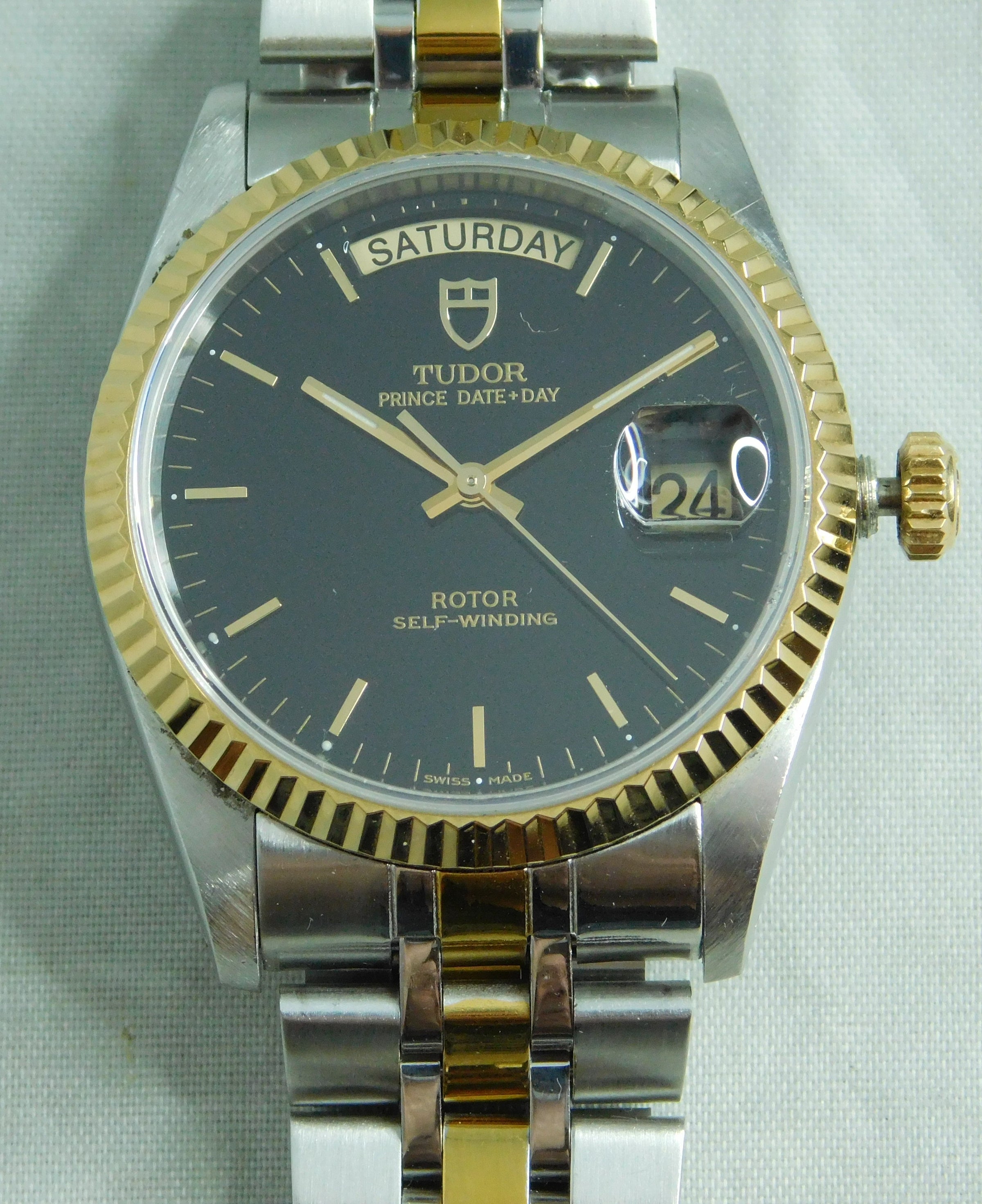 Rolex Tudor Prince Date + Day 76213 Black Dial Circa 2011 Mens Watch....36mm