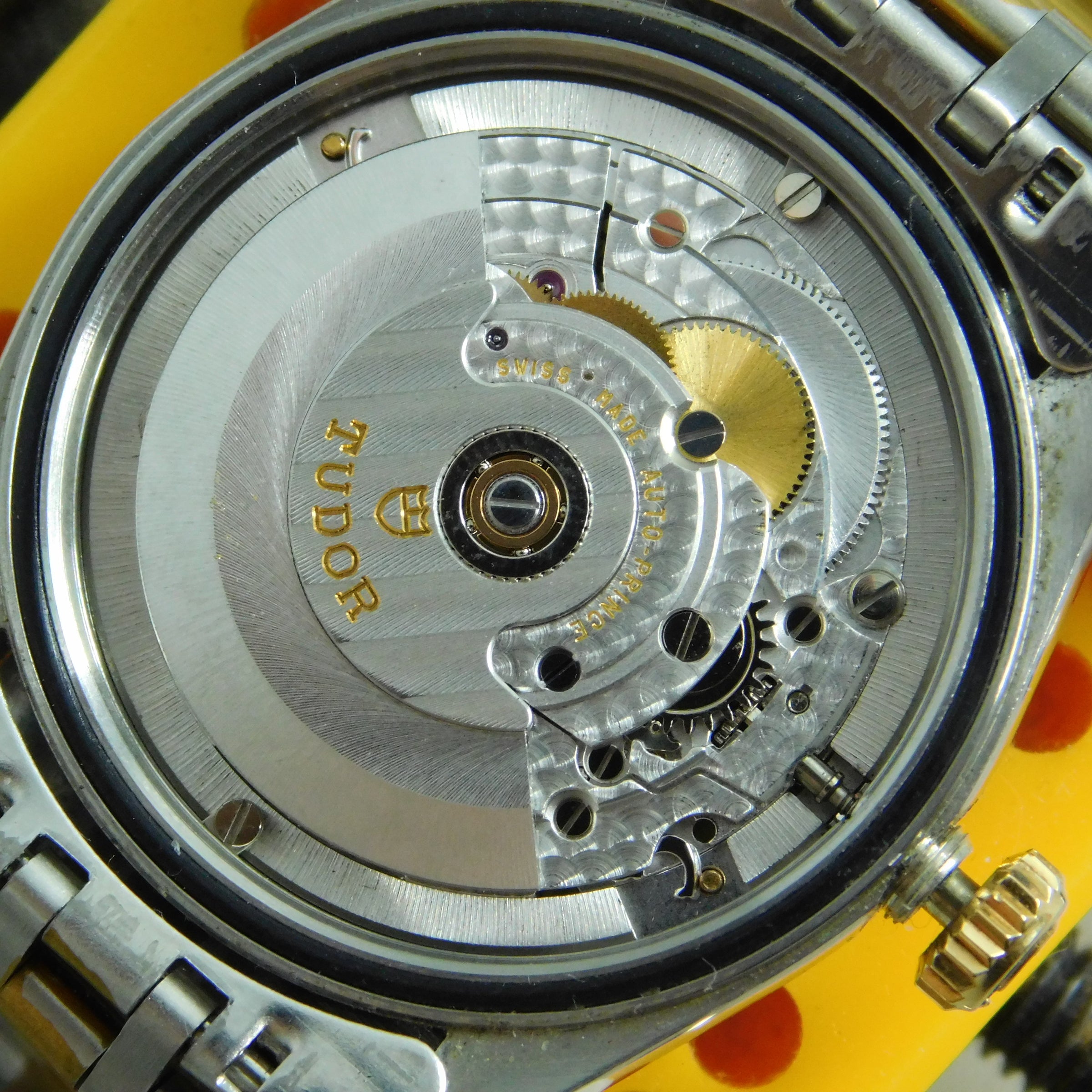 Crown: Signed crown winds, sets, and screws down smoothly ~ *crown pulled out to prevent the hands from moving during photo taking*