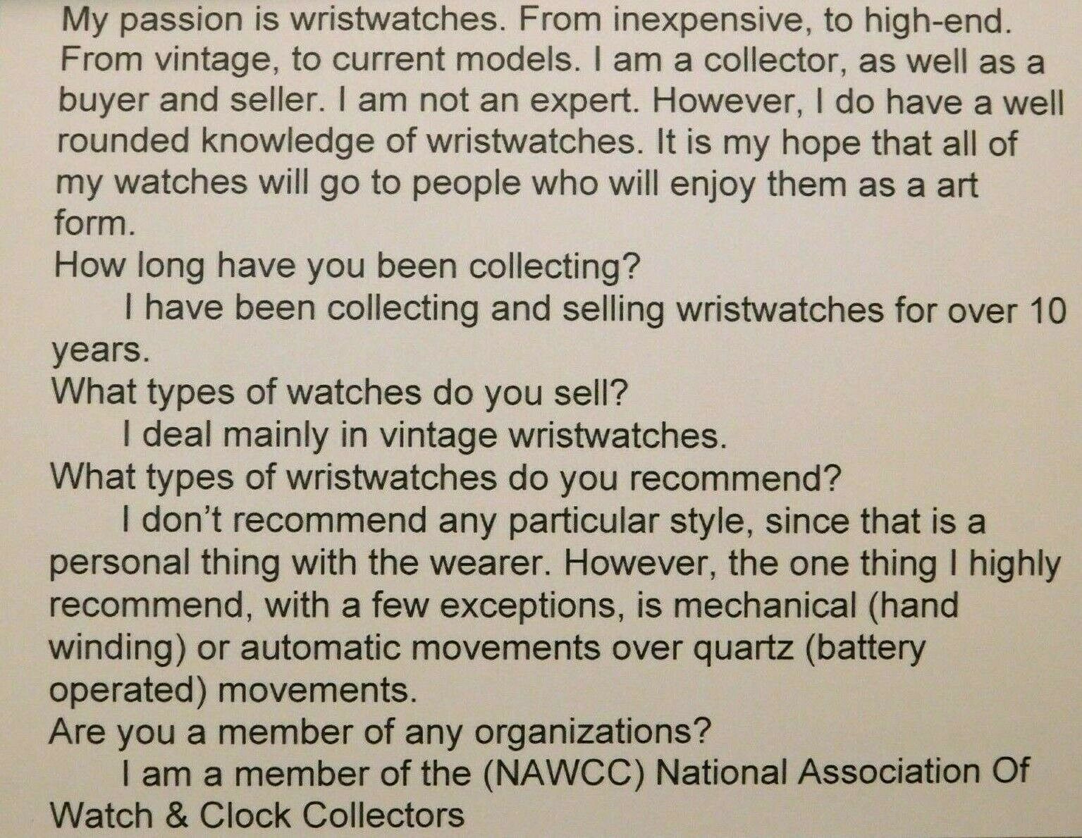I am a watch collector as well as a buyer and seller of new, pre-owned, antique, and vintage watches